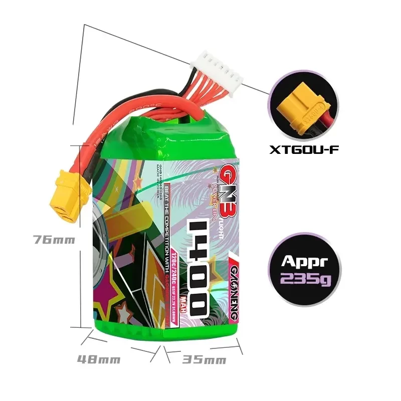 Аккумулятор GNB для FPV-дронов. 6S конфигурация, высокотоковый разряд, разъём XT60. Надёжный источник питания для гоночных и фристайл-квадрокоптеров.