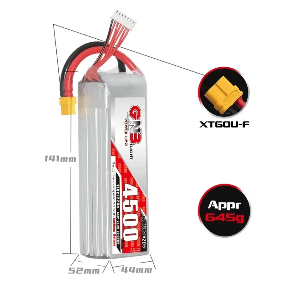 Аккумулятор GNB для FPV-дронов. 6S конфигурация, высокотоковый разряд, разъём XT60. Надёжный источник питания для гоночных и фристайл-квадрокоптеров.