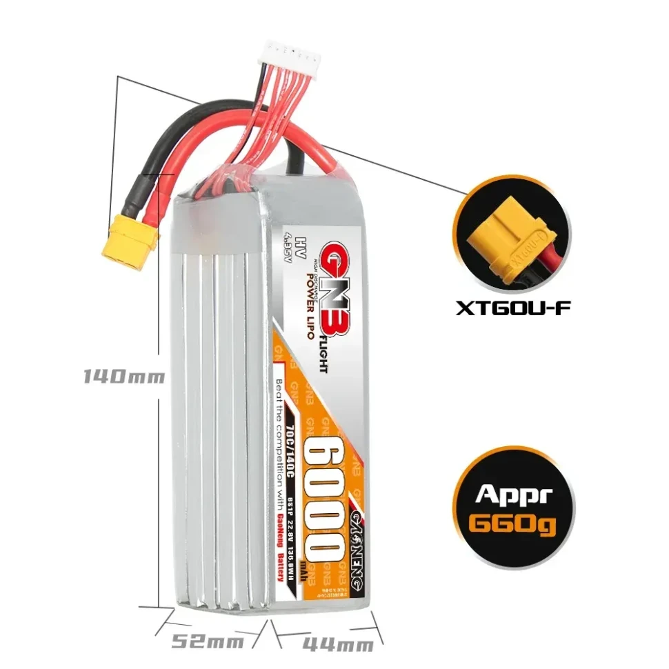 Аккумулятор GNB для FPV-дронов. 6S конфигурация, высокотоковый разряд, разъём XT60. Надёжный источник питания для гоночных и фристайл-квадрокоптеров.