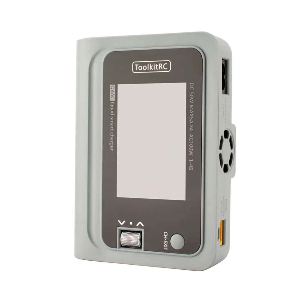 ToolkitRC Q4AC — 4-канальное зарядное устройство для LiPo 1–4S с питанием AC/DC