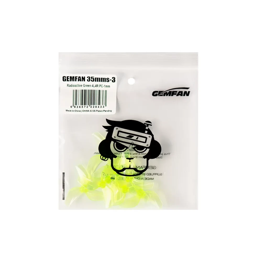 Gemfan 35mmS-3: трехлопастные 35 мм пропеллеры, радиоактивно-зеленые, для моторов 0802.