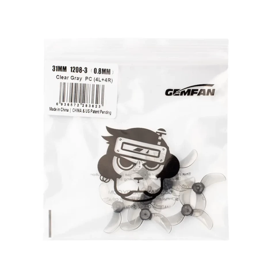 Gemfan 1208-3 31mm PC 0.8мм, прозрачно-серые пропеллеры для FPV дрона