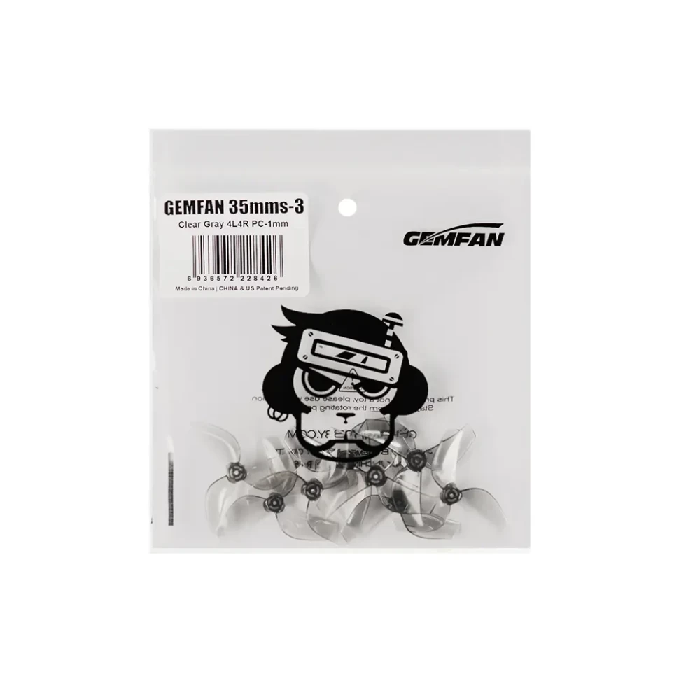 Gemfan 35mmS-3: трехлопастные 35 мм пропеллеры, прозрачный серый, для моторов 0802.